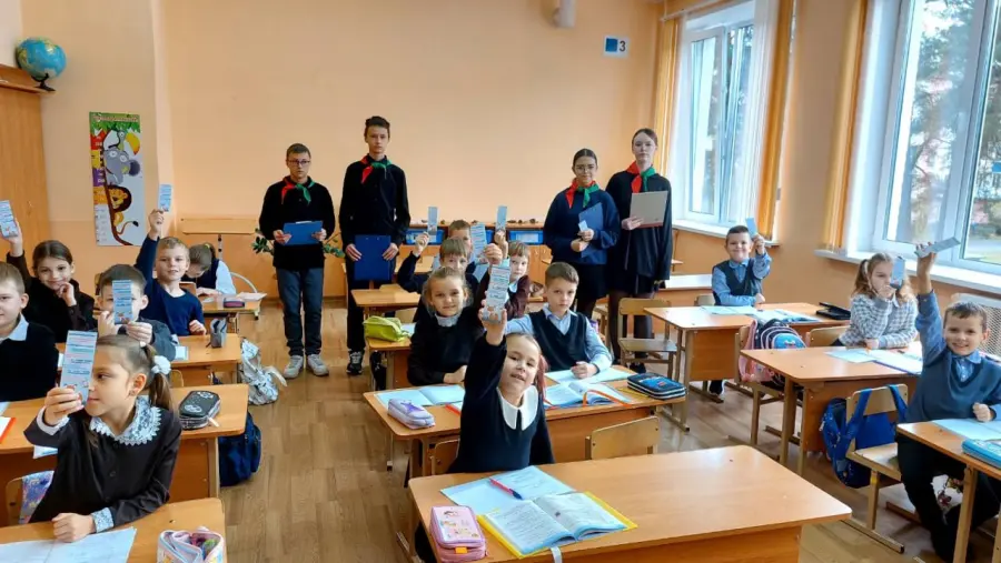 Следующий уровень - кибер урок для друзей. Ребята провели кибер-урок для учащихся 2-го класса, рассказали о безопасном пребывании в сети. Тимуровцы подарили малышам закладки-памятки с правилами как вести себя в интернете без риска.