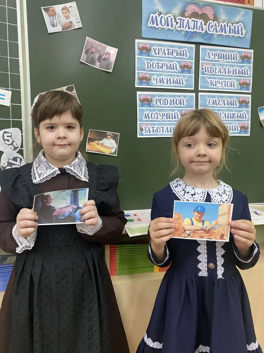 В канун Дня отца в 1 классе прошёл информационный час «Мой папа самый…». Ребята поговорили о том, какой должен быть папа: смелый, храбрый, сильный. Классный руководитель рассказала о професссиях пап.