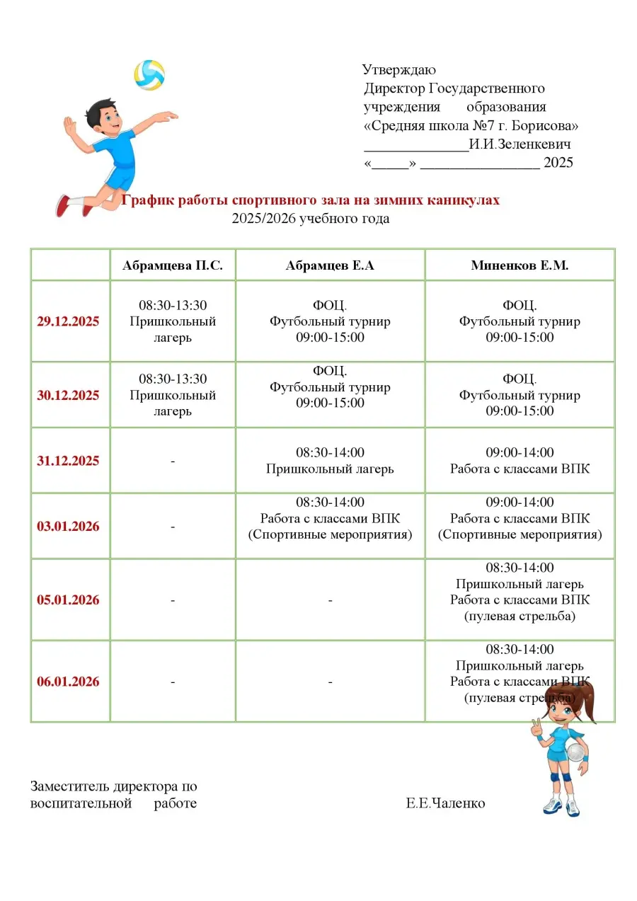 Внимание!!! Работа спортивного зала на каникулах