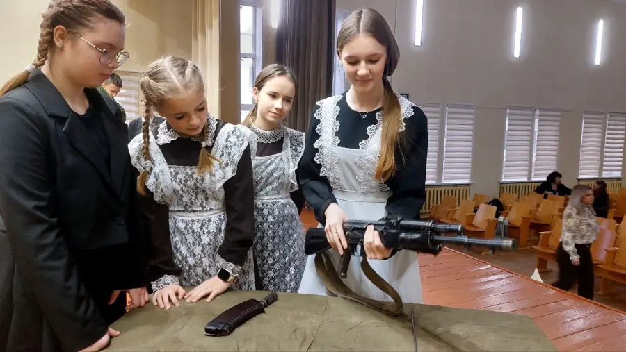 Военнослужащие 3-й школы подготовки специалистов 72 ОУЦ организовали учебные места для учащихся 8 "Б" класса - снаряжение магазина, неполная сборка-расборка АК-74, укомплектование вещевого мешка, основы медицинской подготовки.