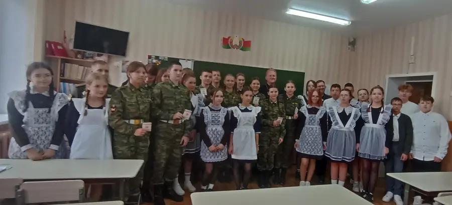 22.05.2025 на информационный час «Молодость – время выбора. Наследники Победы» (об участии в военно-патриотических акциях, Вахтах Памяти, деятельности поисковых отрядов, музеев и др.) к учащимся военно-патриотических классов пришли заместитель начальника по идеологической работе Центра технического обеспечения 72 ОУЦ Кумяков М.М. и настоятель Храма святого Димитрия Донского отец Сергий.